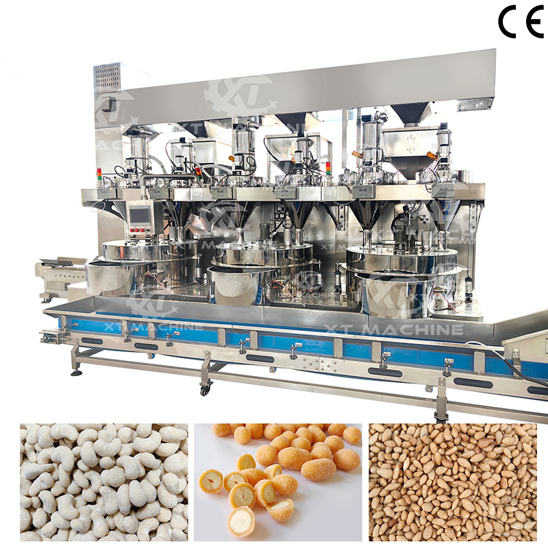 Полностью автоматическая трехпозиционная машина для нанесения покрытий большой емкости, машина для нанесения покрытий на арахис с паприкой для орехов и бобовых