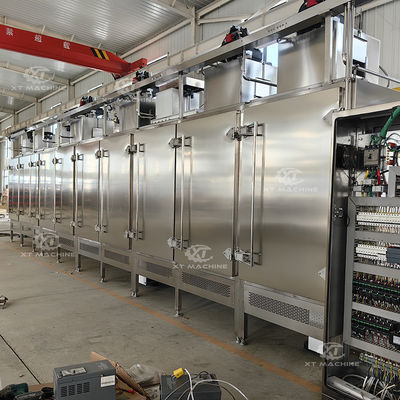 This continuous baking machine allows for adjustable baking temperatures to meet the specific requirements of baking various dried fruits and foods. The machine is divided into three distinct zones: a feeding zone, a baking zone, and a cooling zone. Different output levels can be achieved by increasing or decreasing the number of baking zones, thus satisfying diverse customer customization needs. The machine is equipped with a PLC control panel for quick and easy adjustment of various processing parameters; the control panel also features a parameter recording system.