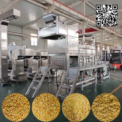 Усовершенствованная двухступенчатая система нарезания начинается, когда расщепленные бланшированные арахисы подаются через вертикальный конвейер.затем течет во вторую стадию, чтобы стать смешивающими грануляторами.С интегрированным вибрирующим просеивателем измельченный материал сортируется на 4 единообразных спецификации, обычно разделенных на 5-8 сет, 8-10 сет, 10-12 сет,из материала менее 12 масел, имеющего текстуру порошка.