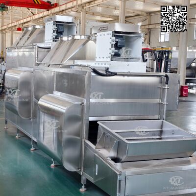 Прохладительный конвейер оборудован двигателем-уменьшителем для точного регулирования скорости.Вентилятор высокого давления, установленный в верхней части конвейера, эффективно удаляет влагу из бланшированных или жаренных арахисов., обеспечивая оптимальное качество продукции.